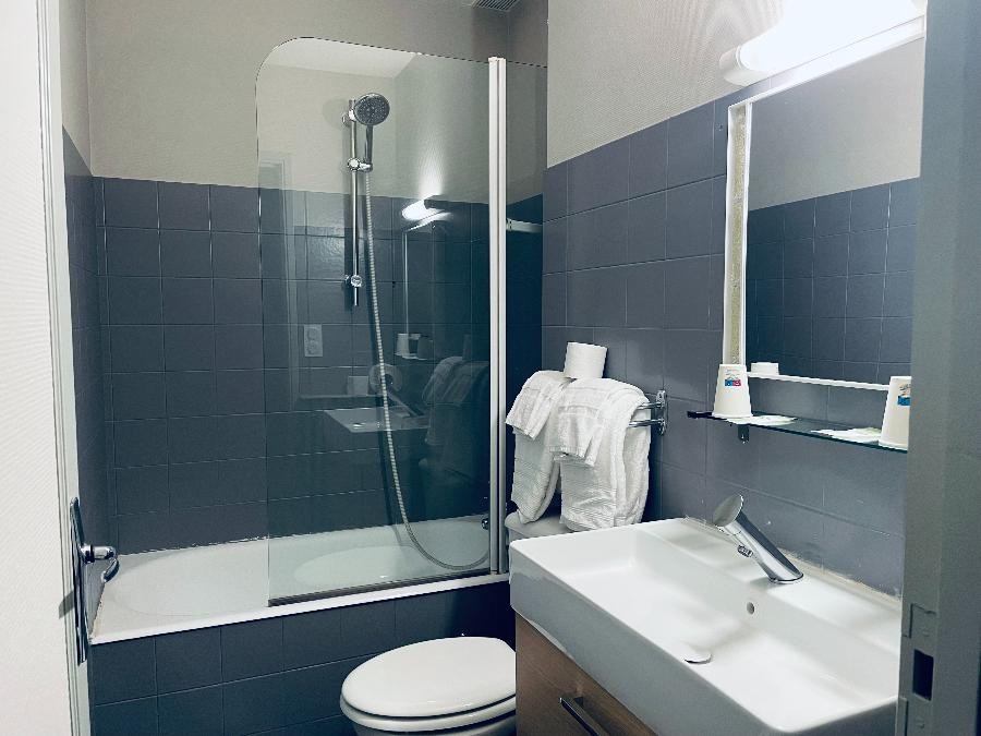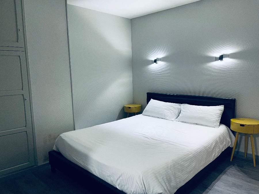 Notre chambre double, entièrement remise à neuf, offre une atmosphère accueillante et reposante. Dotée d'une literie neuve, elle est équipée d'une TV, d'un lavabo et d'un accès Wifi.